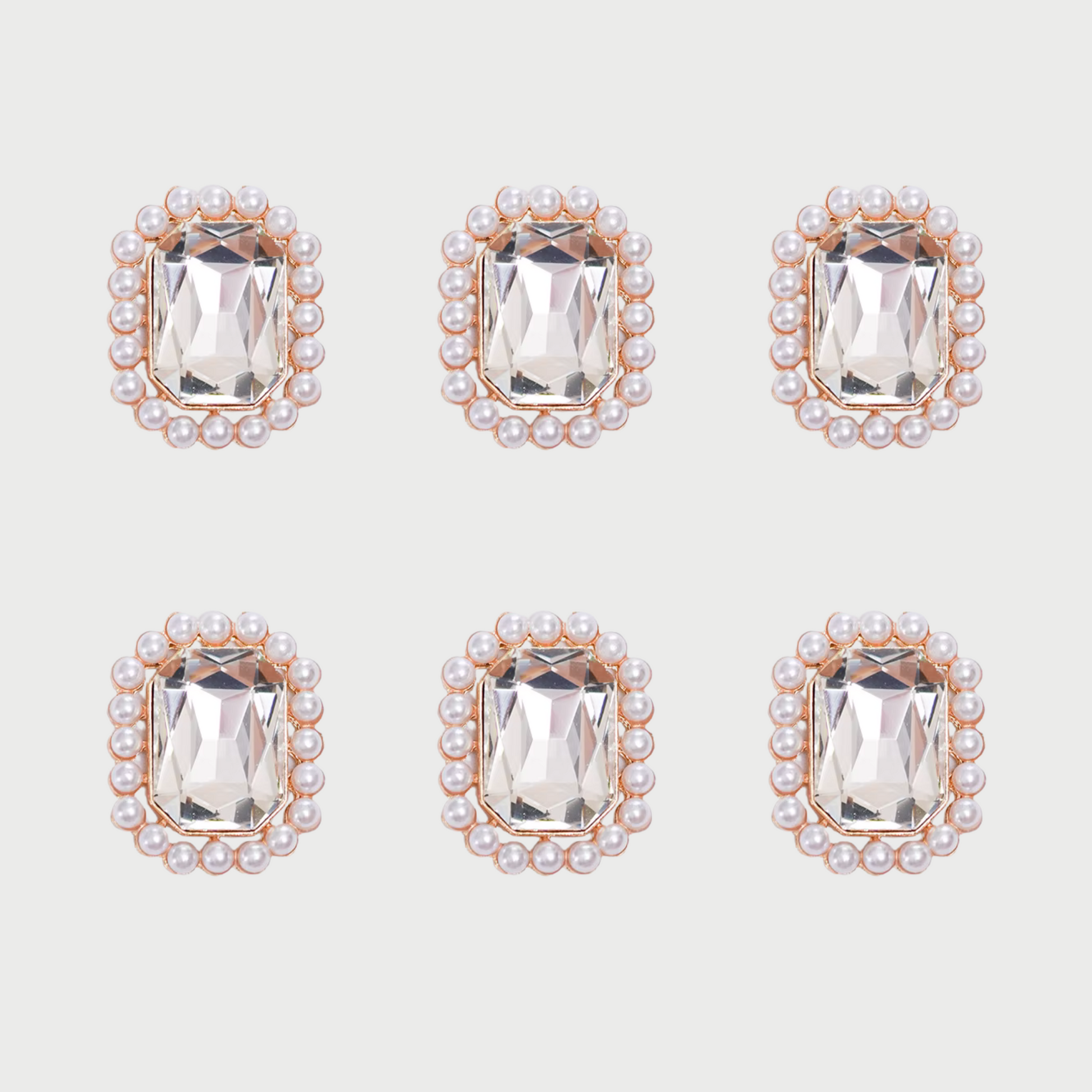 6-piece set of button covers with white stone centers and pearl-trim detailing